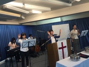 プランナーの真境名さん、奥さんと一緒にこころから賛美をしています。