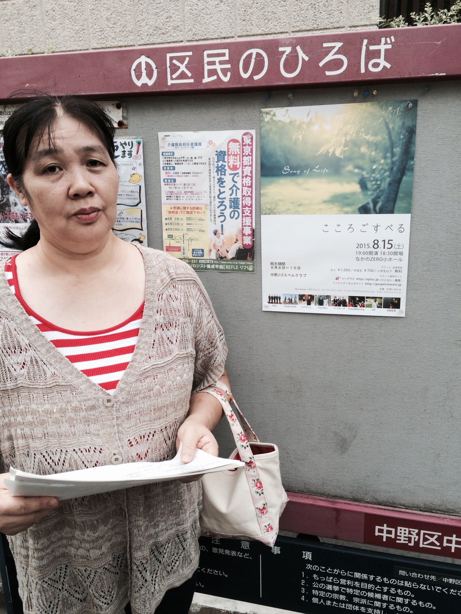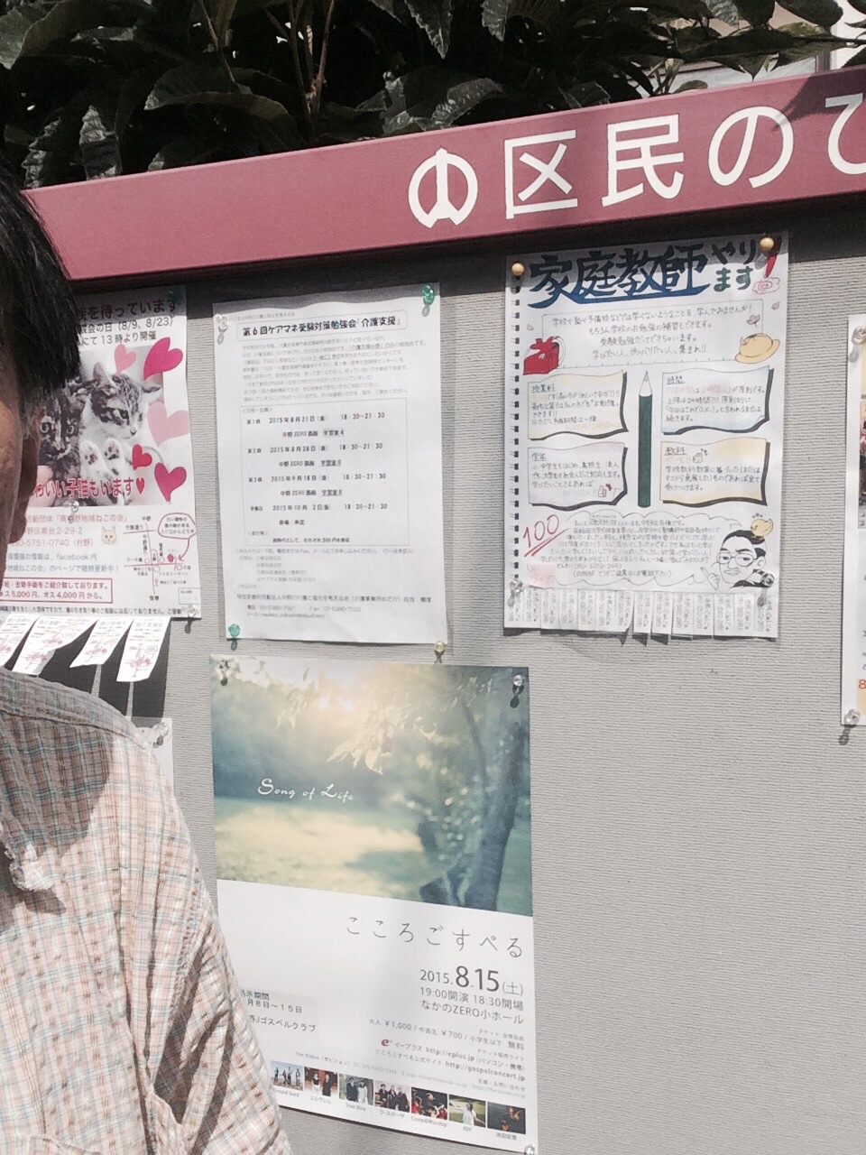 〝こころごすぺる〟のポスター貼りです♪中野区の指定の場所180箇所に貼るんです。山川さんと中野通りで縦に割って東側が山川さん、私は西側を担当します。中野区って結構細い道が多いんですね。一台がやっと通れる道が一通じゃなかったり、それでいて急に鋭角に曲がっていたりして。はじめはなんと通りづらい道だと苦戦していましたが段々と慣れてくると逆に楽しくなってきたりして♪音楽聴いて余裕も出てきてw・・・南からポスター貼りをはじめて18箇所目に差し掛かった時でした。ハンドルに伝わってくる独特の振動。・・・懐かしい。久しぶりにやっちゃいましたwやったー感謝します!