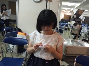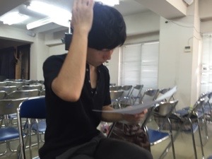 明日のメッセージの為の準備の萱野さん。 ほぼ、準備OK!
