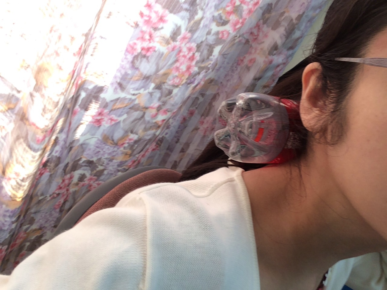 後ろに寄りかかれるとこで、力を抜きます。 気持ちいいですよ〜! お金かかんないし、ペットボトルとお湯さえあれば、どこででもOK。 ミカエル