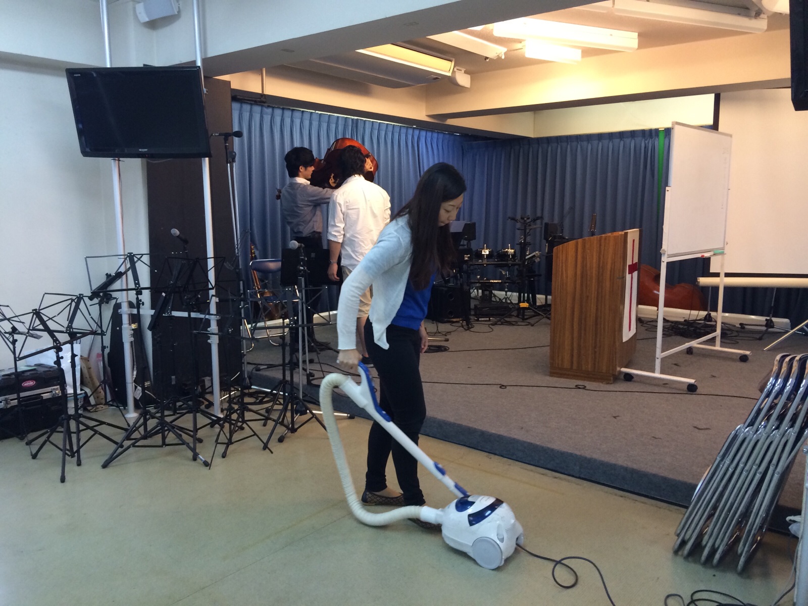 椅子を並べて、会堂のお掃除完了です。 kato