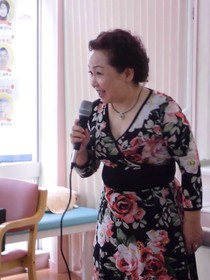 バックの(紙で出来た)お花と真理子さんの衣装の花が合ってて華やかですね。