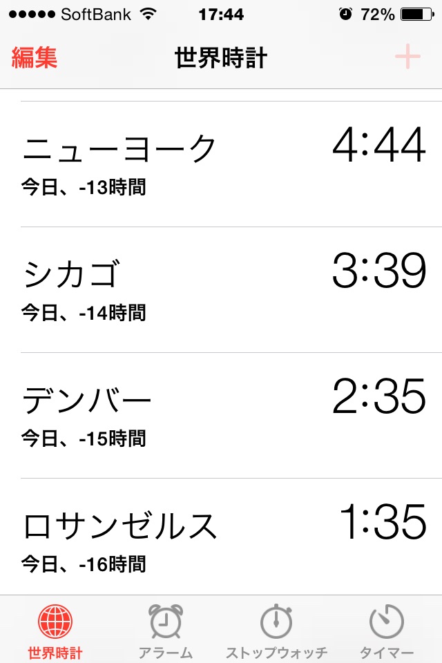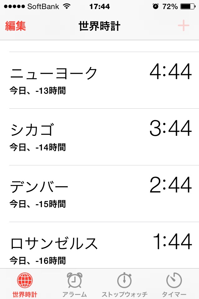 世界時計に不思議な症状が。スクロールしたら右のように直り、「世界時計の設定が多すぎます。一つ削除してください。」とクレームが表示されました…。 kato