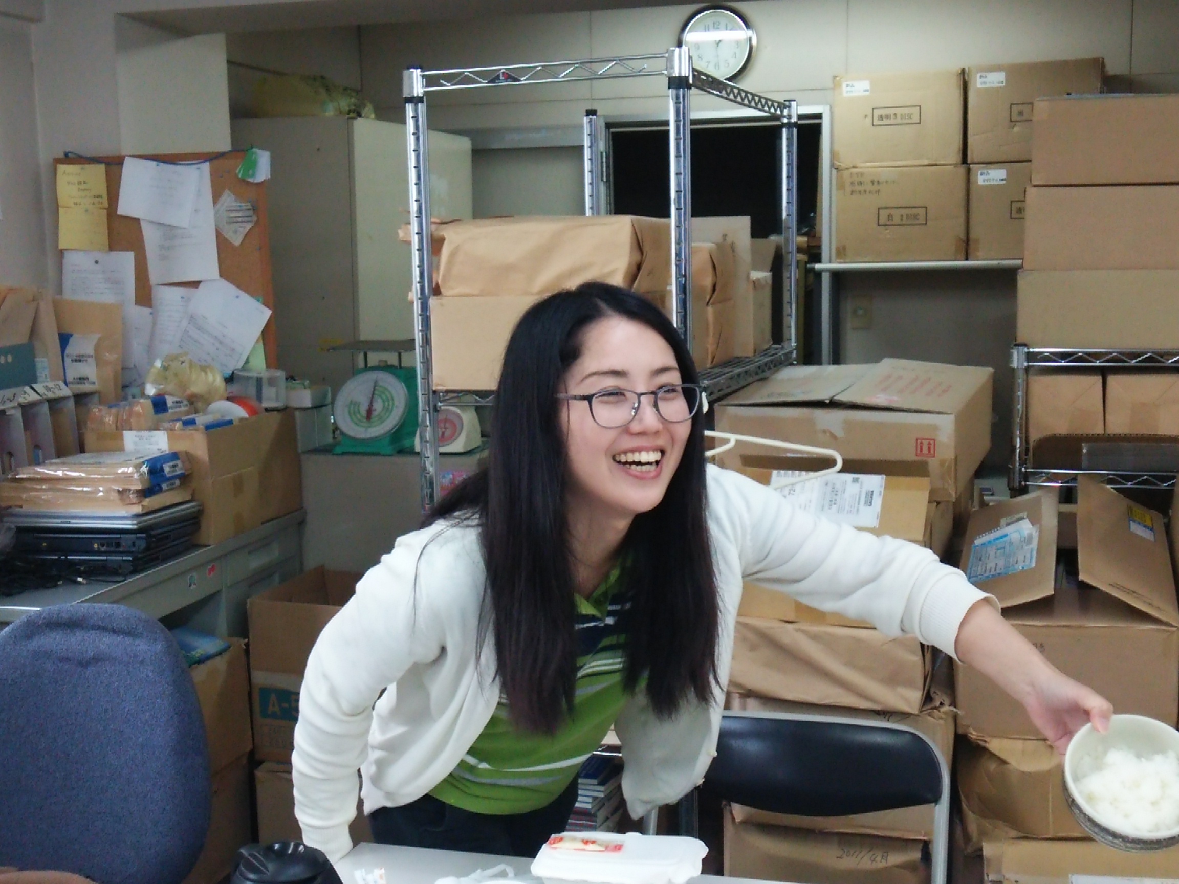 ご飯の量はこの位で良いですか~~? 鈴木さんと加藤さんは、お仕事中! お腹すいたぁ~~!ツチヤ
