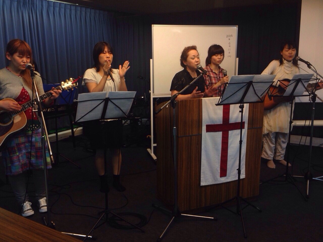 毎週水曜日19時からは水曜祈祷会が行わ れます。 【これは、以前撮影したものです。】 雲虹営業部真理子さんが、賛美を導いて下さいます。オンラインでも見られます。イザヤ書の学びもしています。ツチヤ