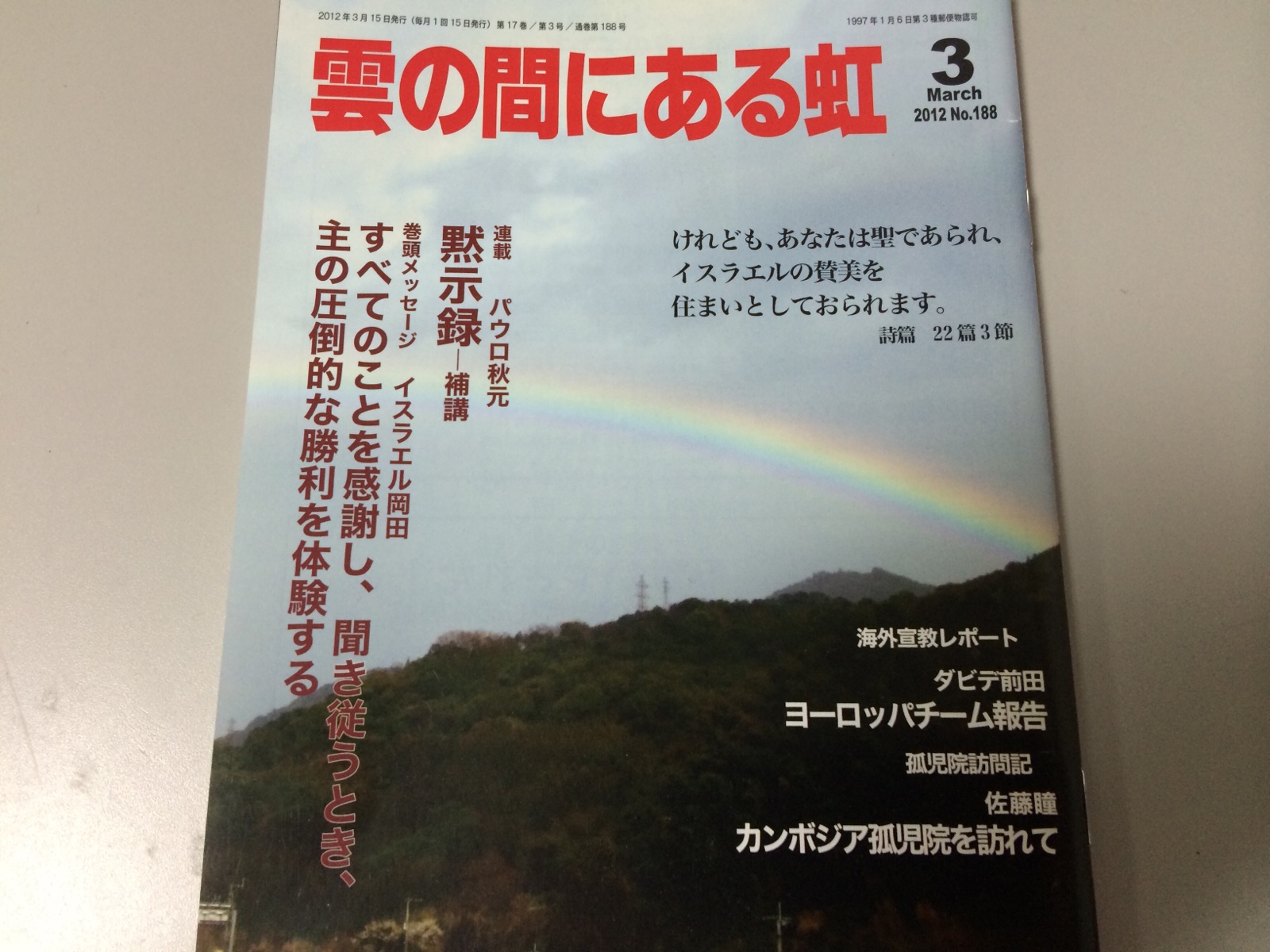 2011年12月のヨーロッパチームの素晴らしい出来事は、月刊「雲の間にある虹」2012年3月号に書いてあります!