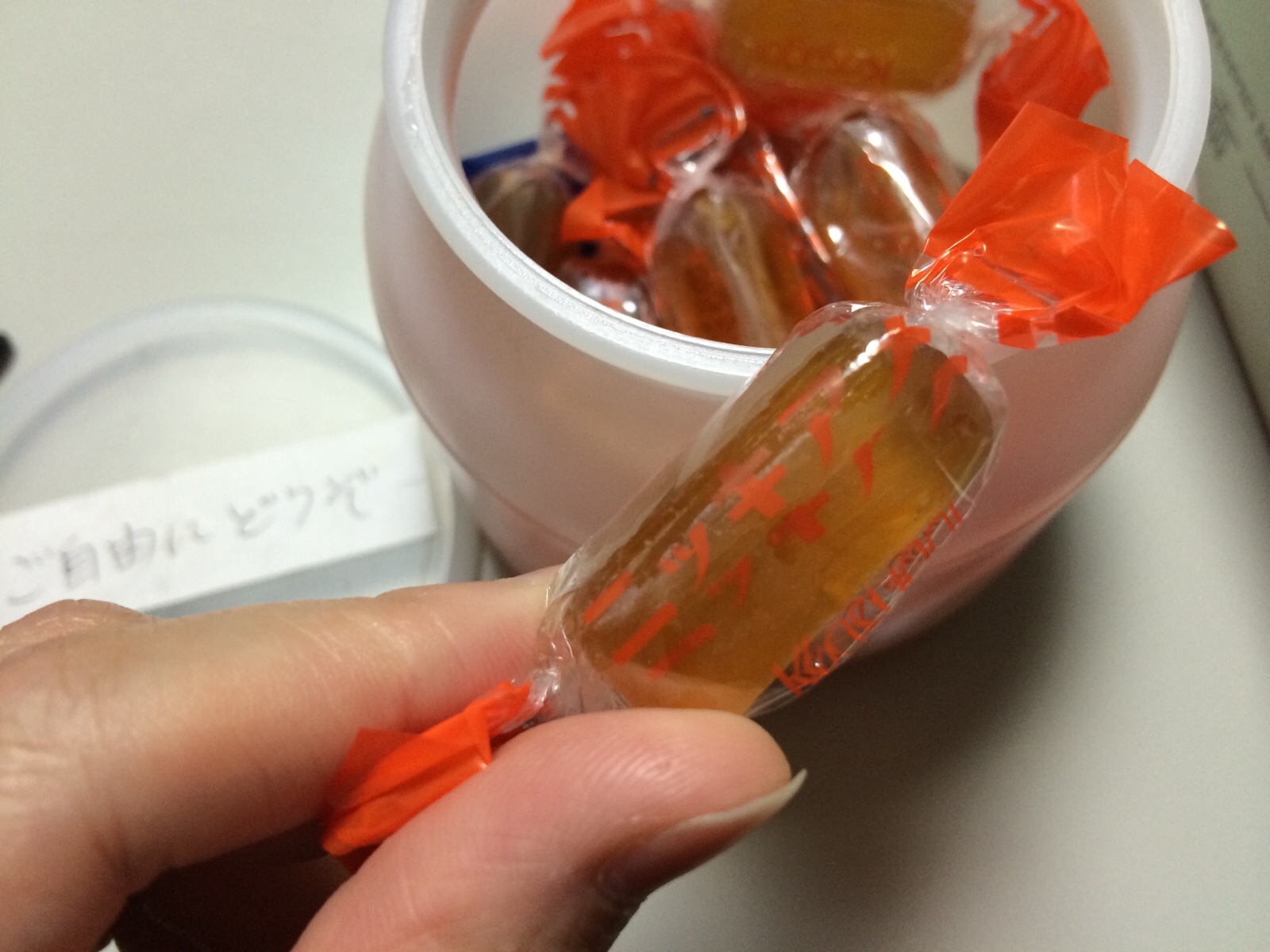 教会事務所でニッキの飴をもらって、お仕事してます。 ミカエル