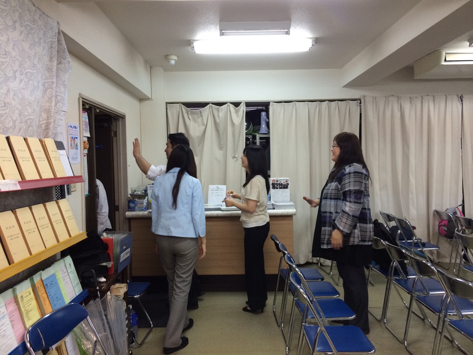 見送る皆さん。 私は「バイバイ、バイバ〜イ」って言われました。 「バイバイ」って、何語だっけな? ミカエル