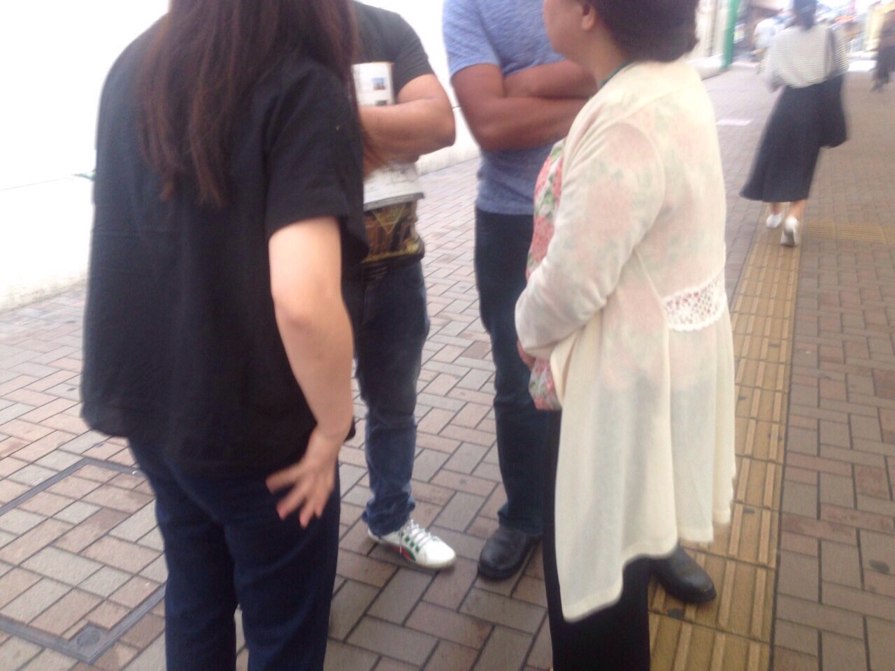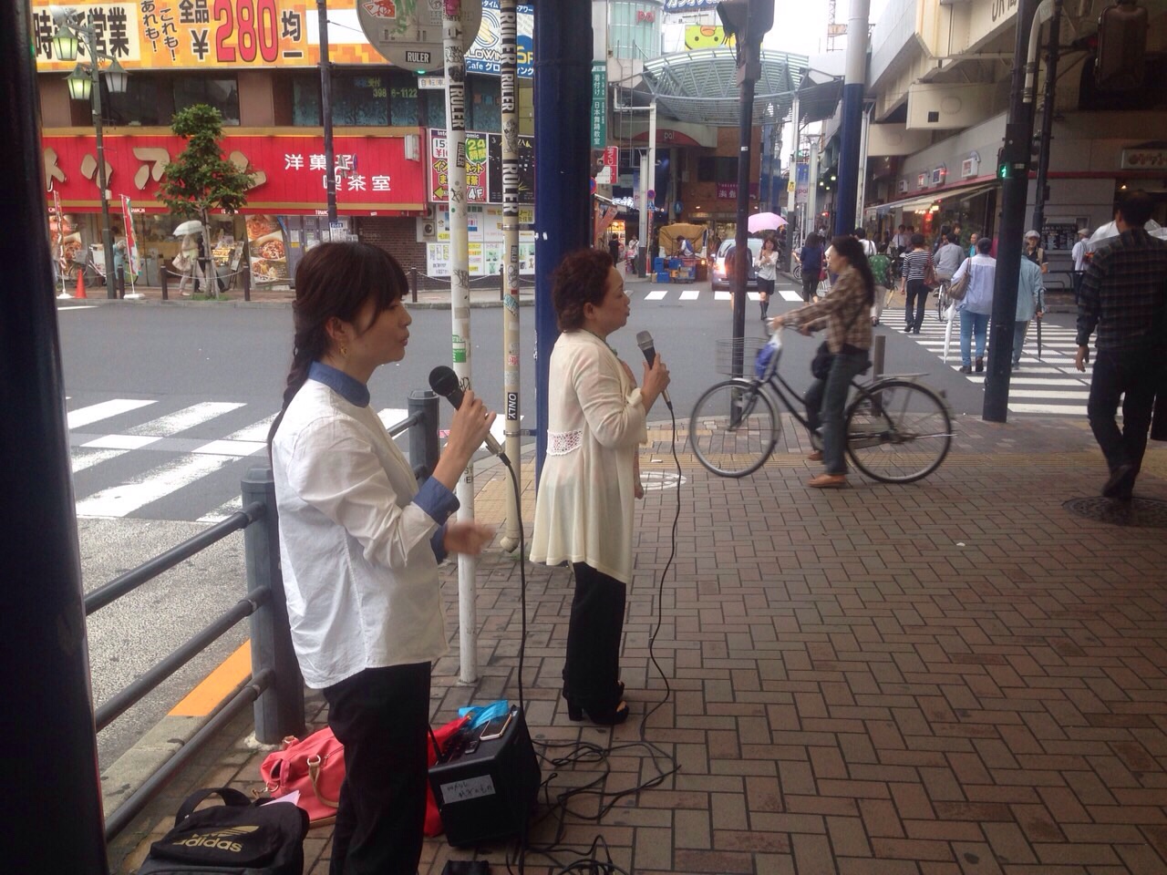 路上ライブですね、8/15日のこころゴスペルコンサートのための、宣伝、チラシ配りです!