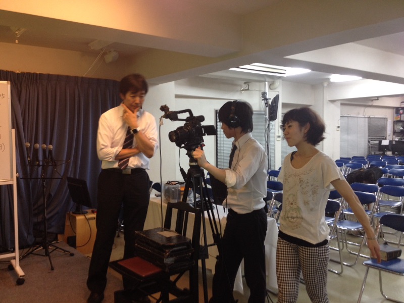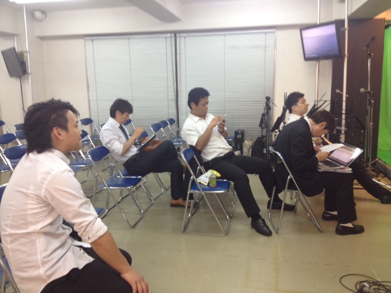 1分動画撮影スタッフの皆さんと、出演者?の皆さん。 素子さん、シオン君頑張ってますよ!