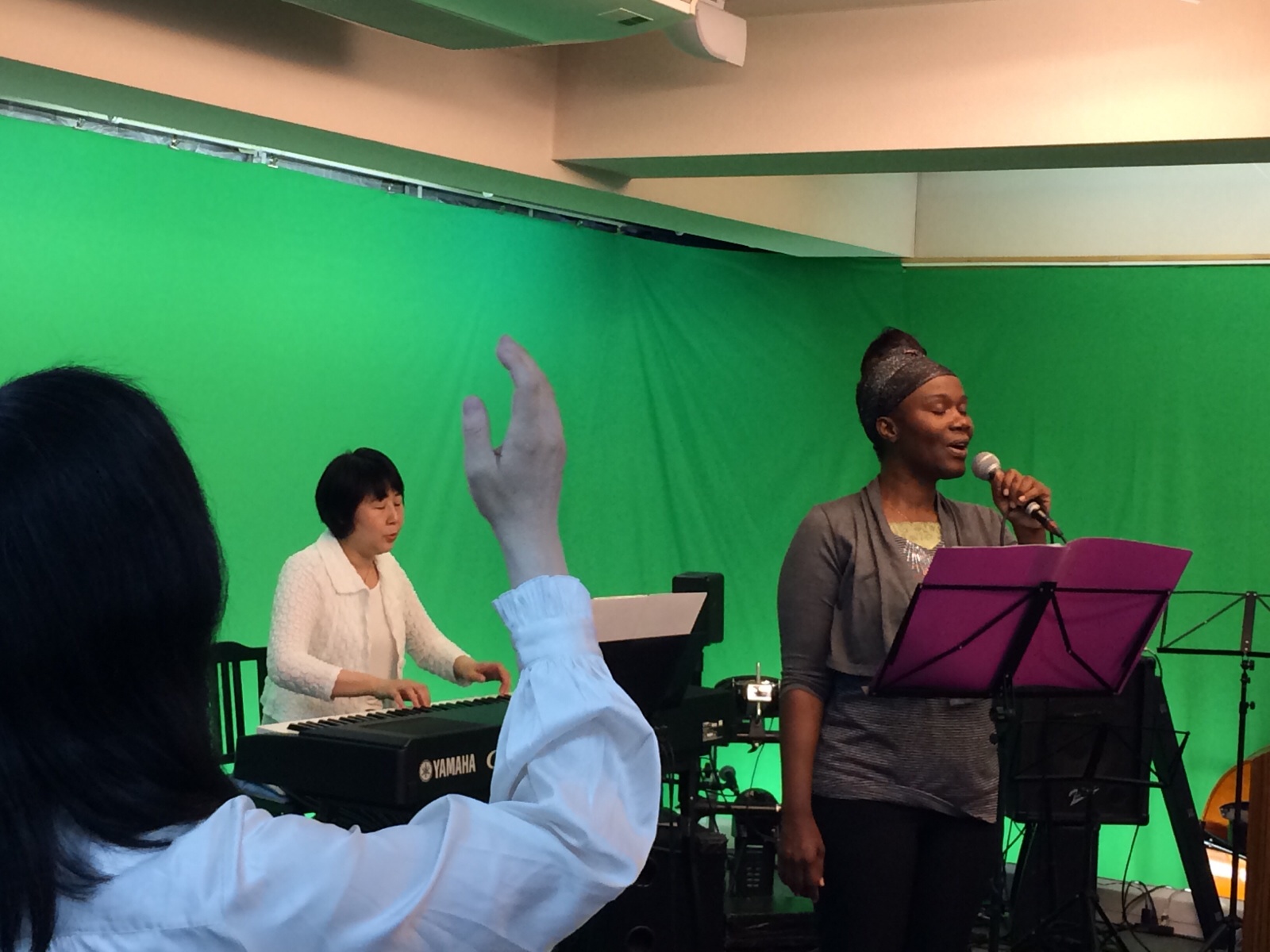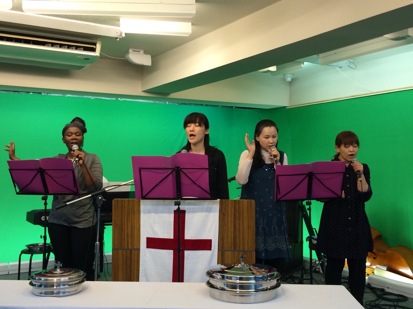 インターナショナル礼拝の会衆賛美。賛美リーダーは、しおこちゃん。