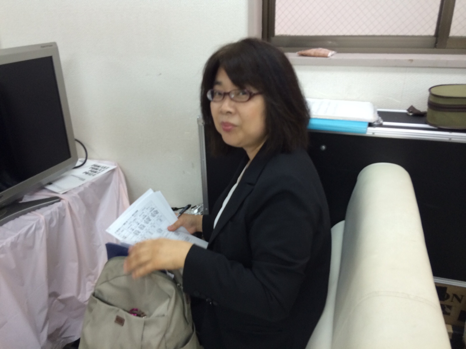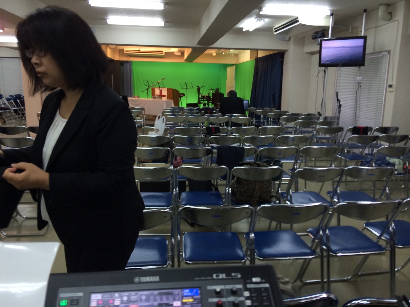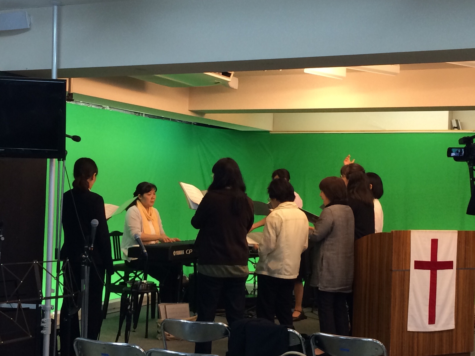 大野さんが楽譜の準備をしてます。インターナショナル礼拝かな。 ミカエル