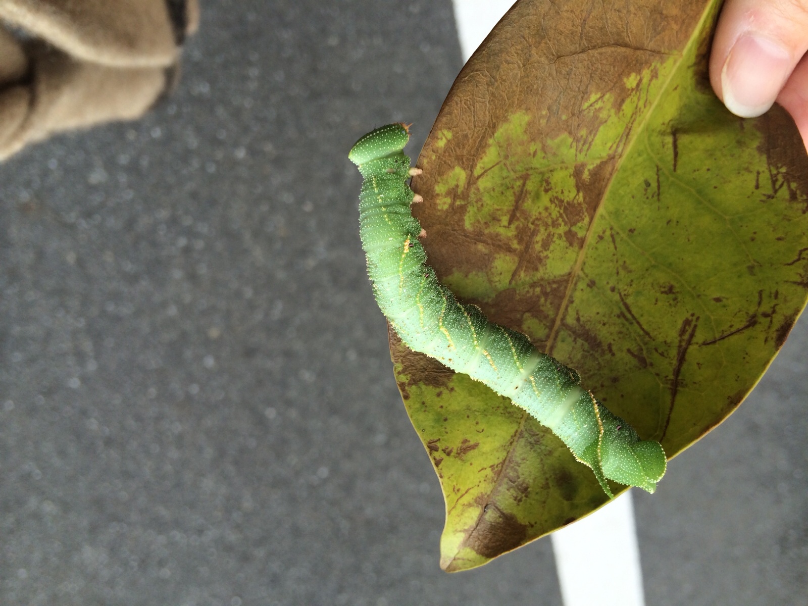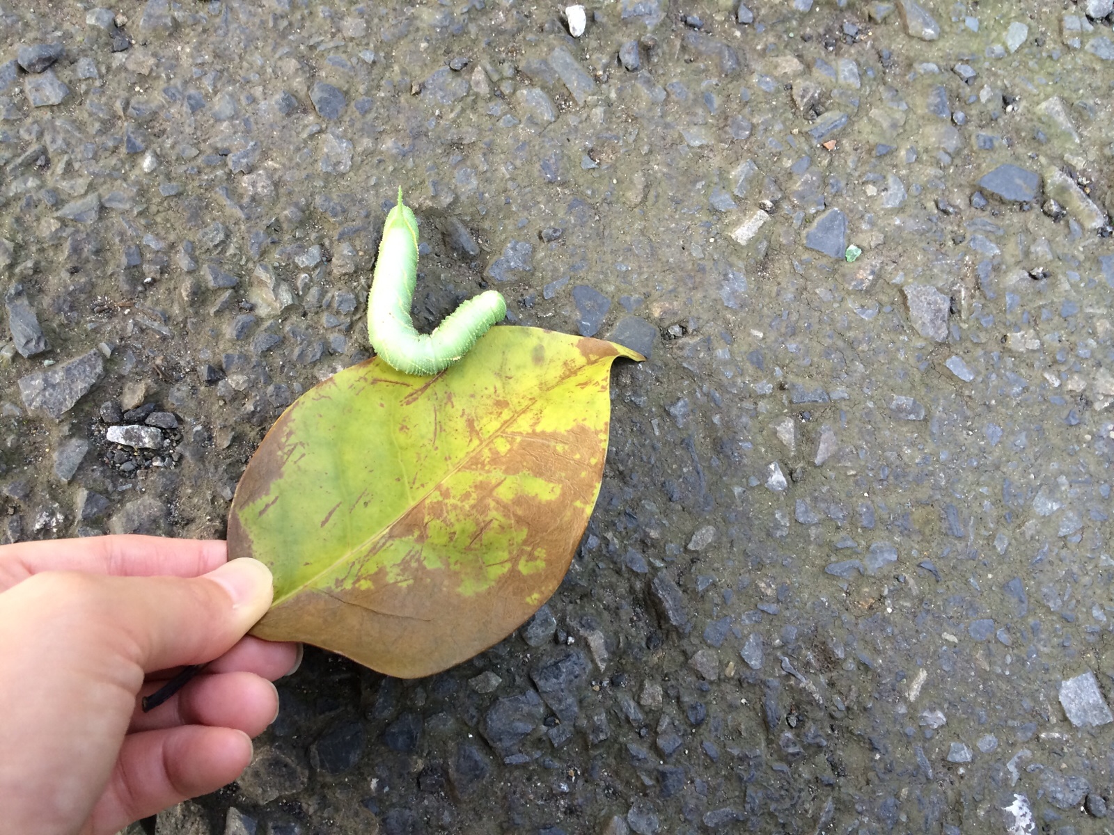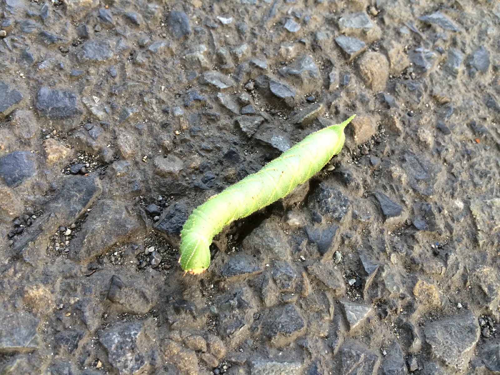 今朝は、道路で芋虫を見かけました。 ミカエル