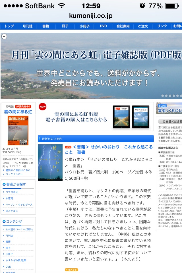 雲の間にある虹出版のサイトの電子書籍のページは、こちらです。 kato