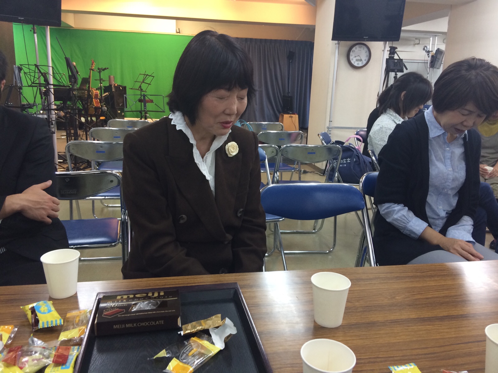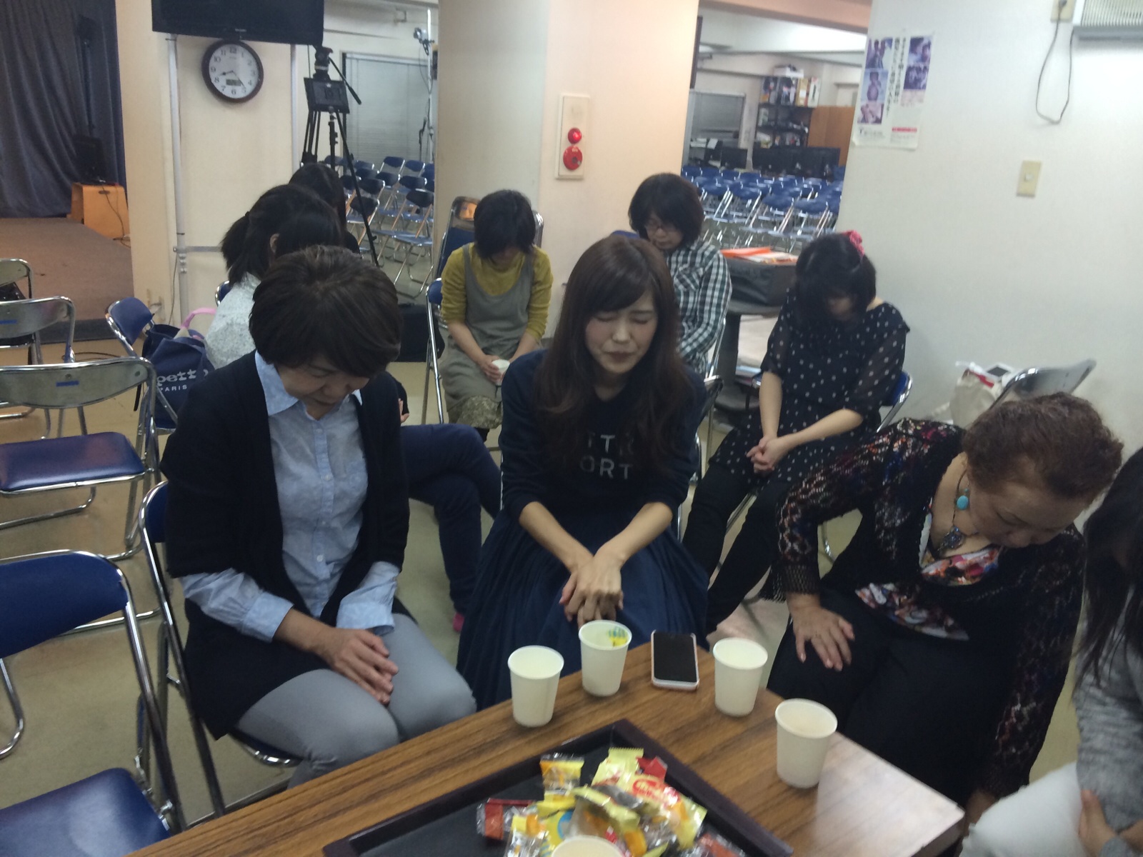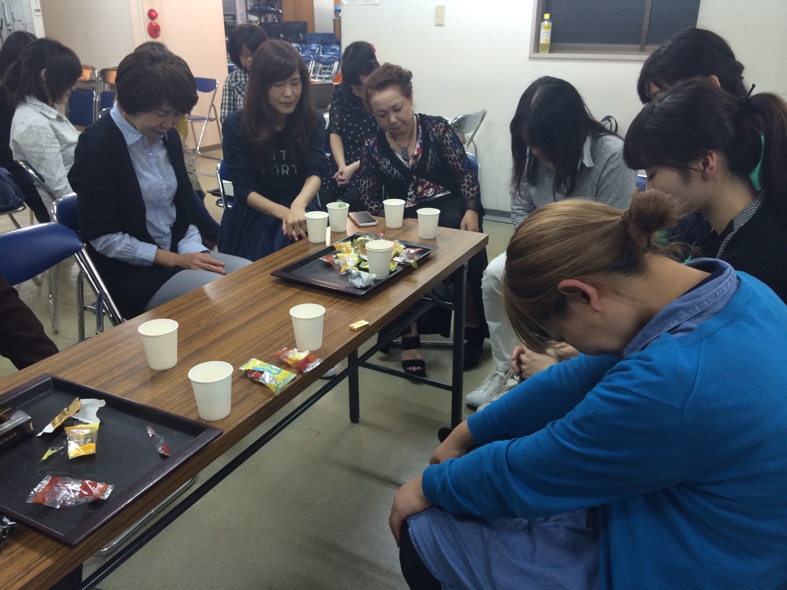 皆でお菓子を囲んで、ワイワイ。 ゴスペルの集い。