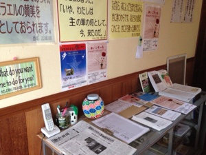 熊本教会の受付です。 皆さん、教会においでください。
