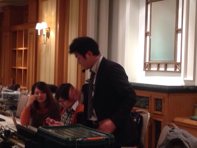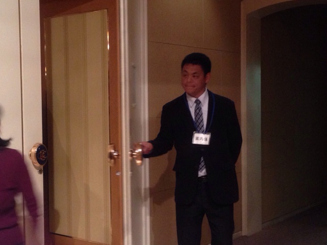 案内係のスタッフは、ミーティング中