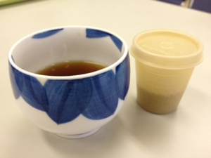 お味噌汁は、頂いた、水菜とキャベツで。