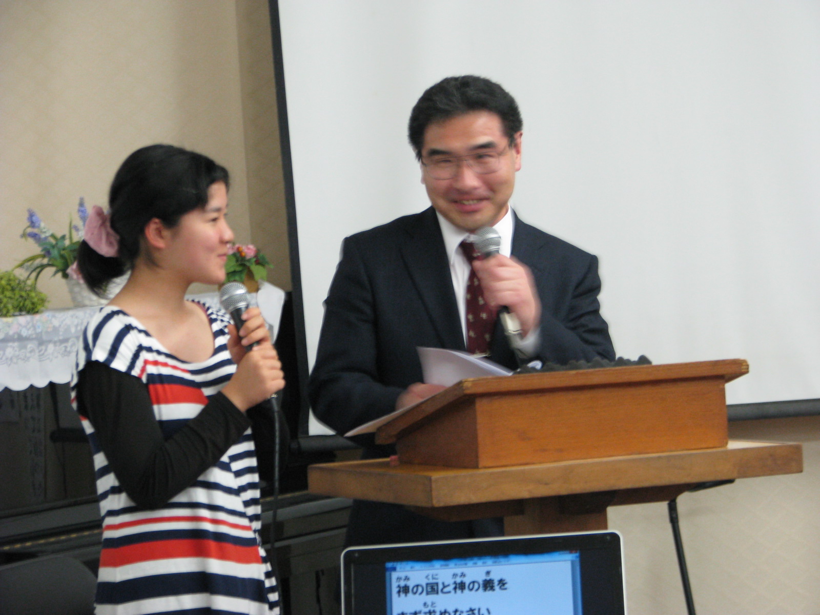 伊藤牧師さんとごいっしょに、司会のご奉仕をする、Eちゃん。