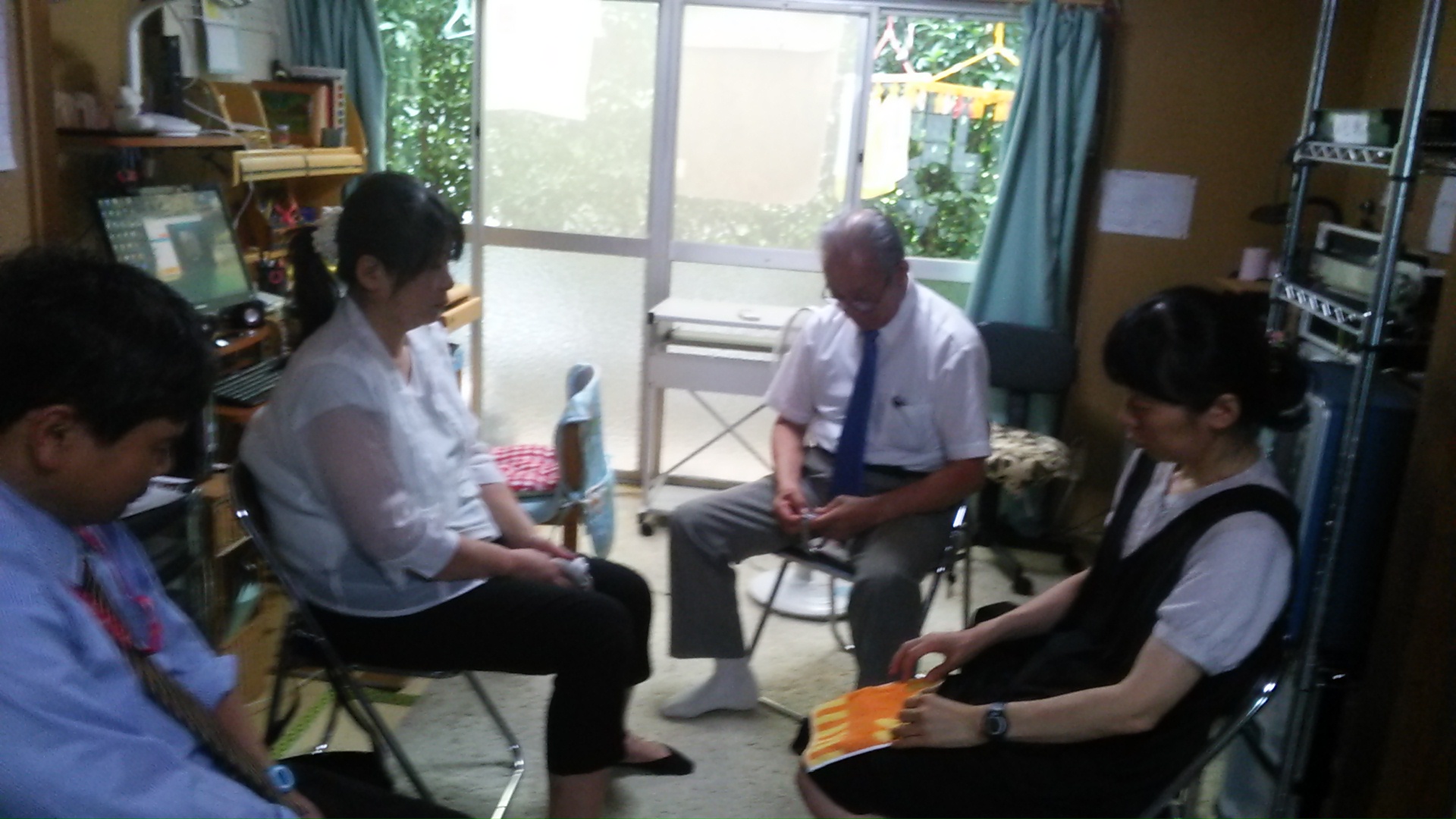 スカイプも用いて、熊本カリスマ聖会の準備祈祷会が教会の事務所であっています。