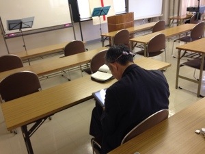 パウロ牧師はホームページのチェックをしておられます。 kosuda