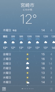 雨の影響からか、気温のわりに寒く感じます。宮崎 みなみ