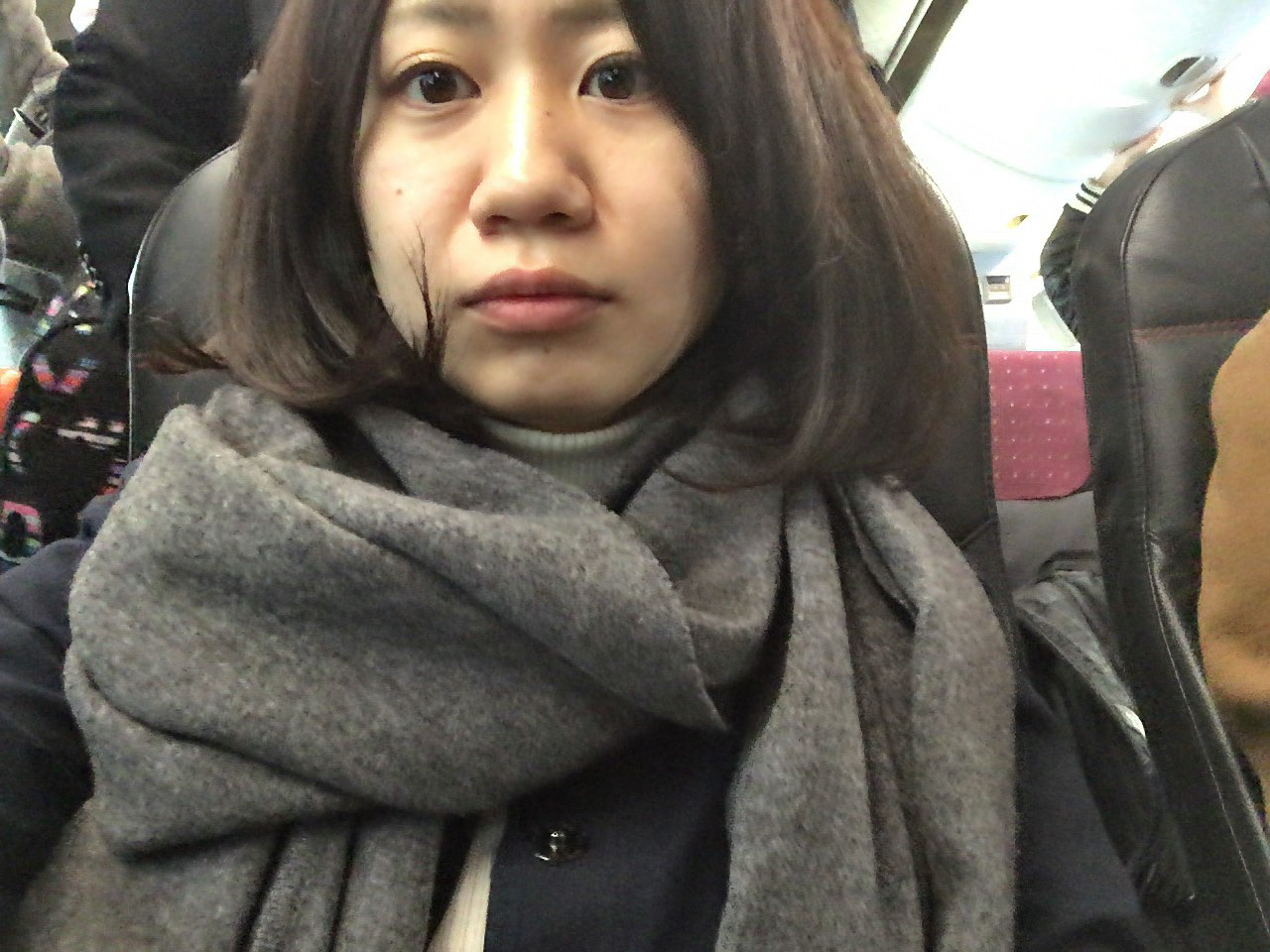 通路側の席に座れました。同じ飛行機に知っている顔がたくさんいました。 Yui