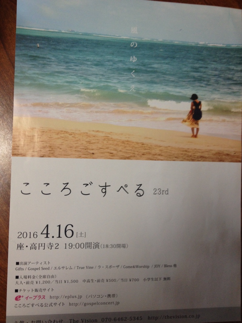 出来たてのポスターを昨日いただいてきました。 聖会の時にどうぞ! ご家族、お友達を誘って来て下さいね。 PY