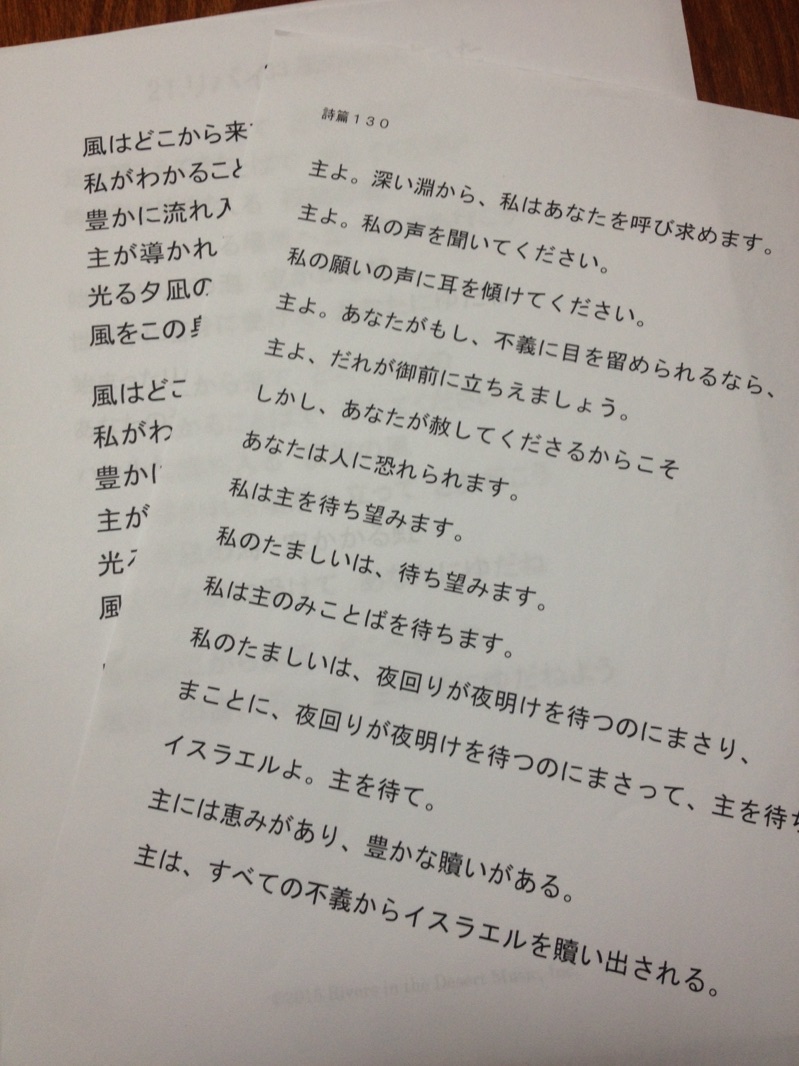 メイン講師の秋元さんが賛美する曲の歌詞をプリント! PY