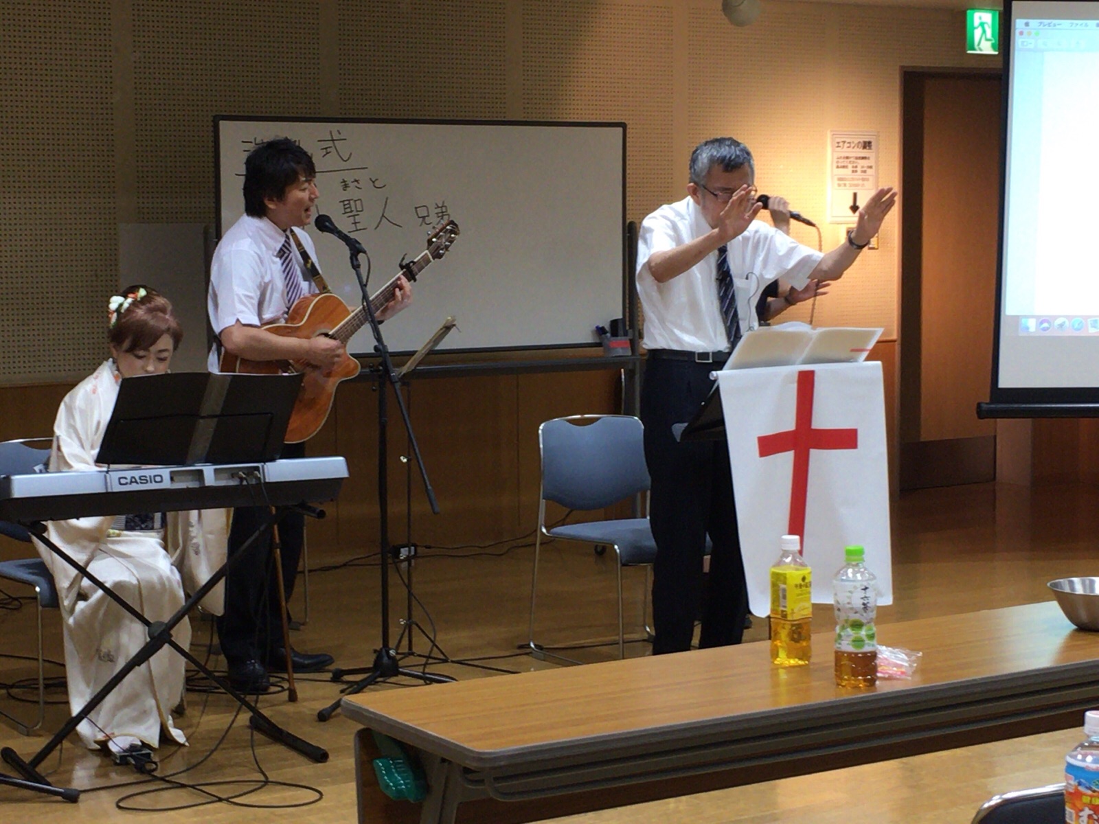 三本松牧師リードで、賛美