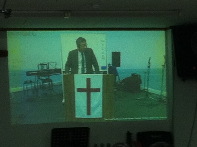 東京のピアノのBGMが流れながら、一緒に祈り、一緒に聖餐式をしています。