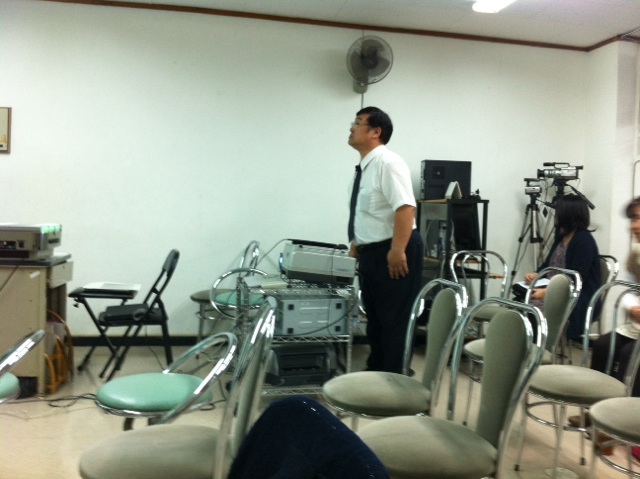 沖縄の永藤牧師が半袖です。さすが沖縄です!? 東京アンテオケ