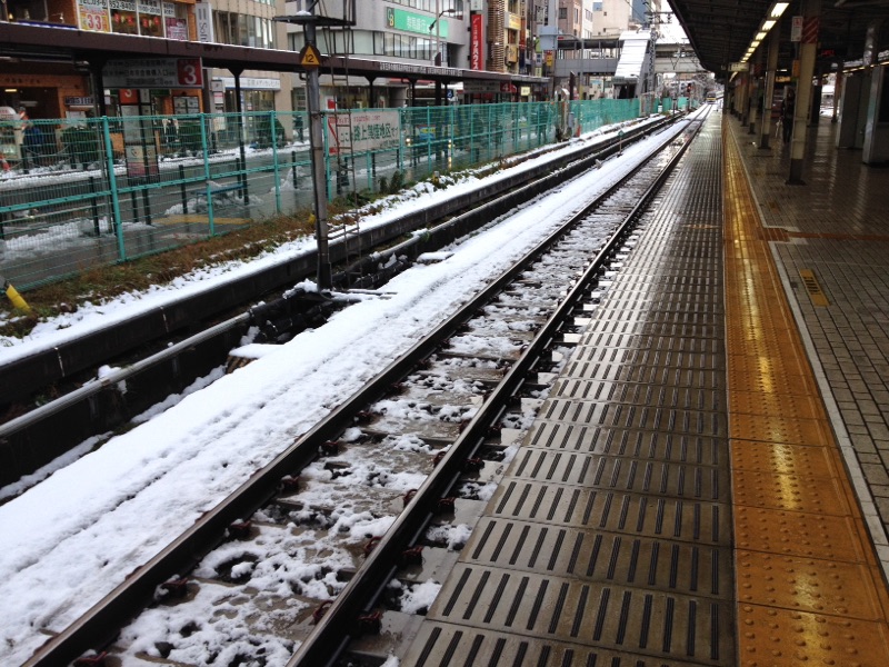 ちょっと早めに出勤。線路の上も雪積もってます。Imai