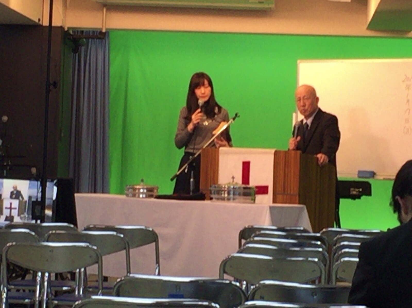 インターナショナル礼拝、通訳は志生子さん。