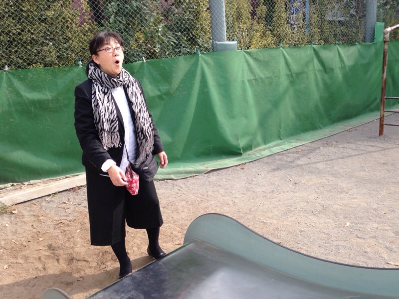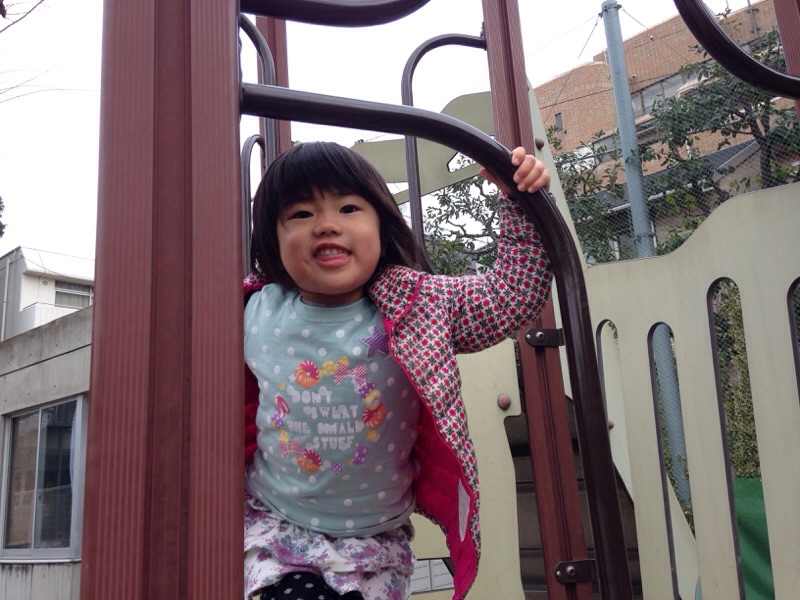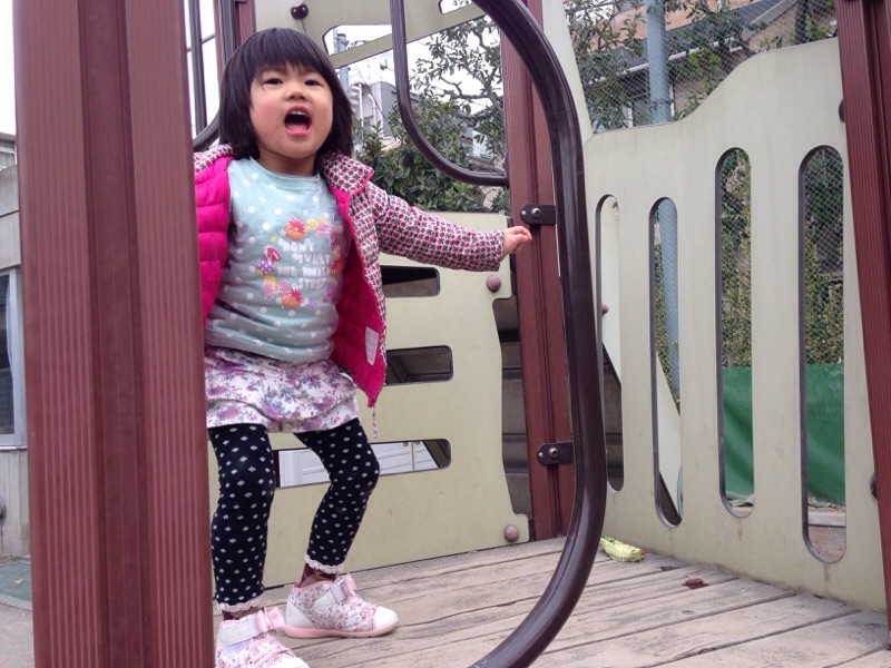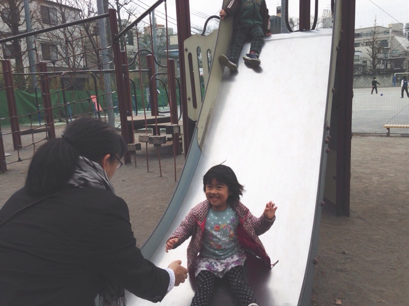 今からすべり台します! 下でキャッチして〜〜と叫ぶるんちゃん(≧∇≦)