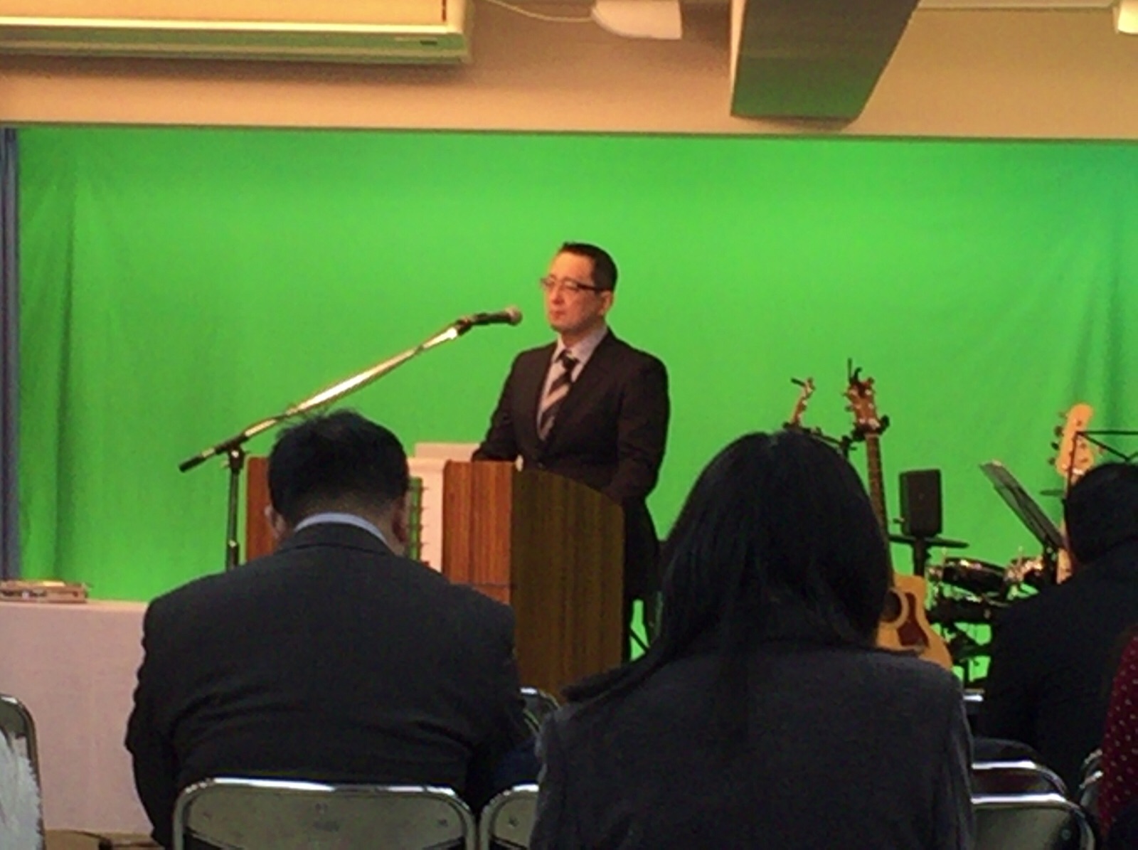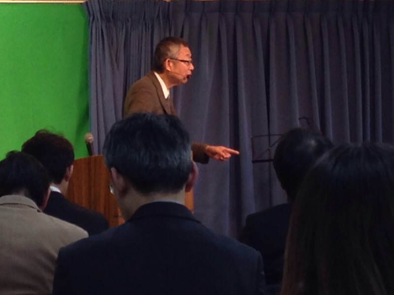 司会の塩島さんが今日のメッセージ箇所を拝読されています。