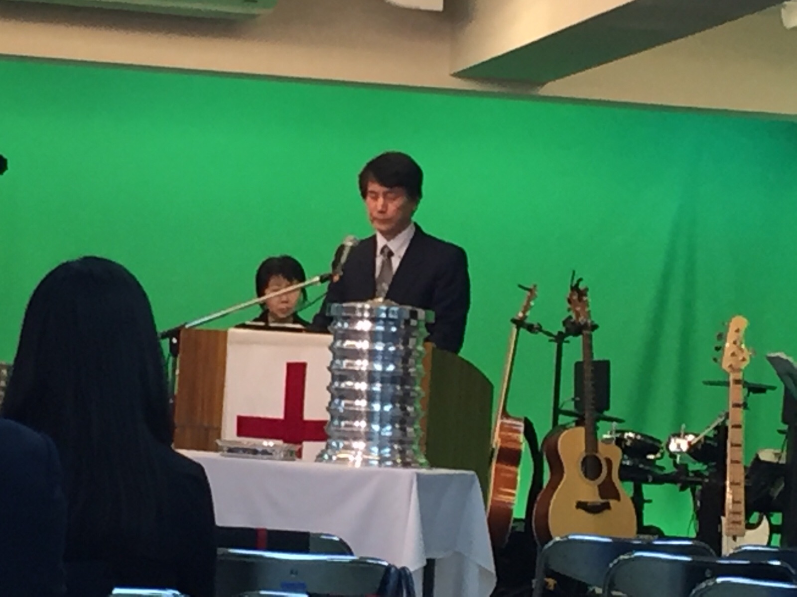 第一礼拝前半賛美を導くのは真境名さん。