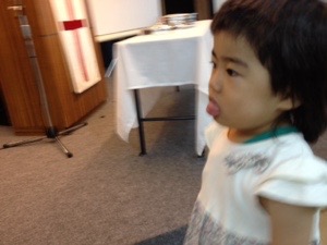 礼拝にはるんちゃんも参加してます。 るんちゃんはアンパンマンが好きなそうです。