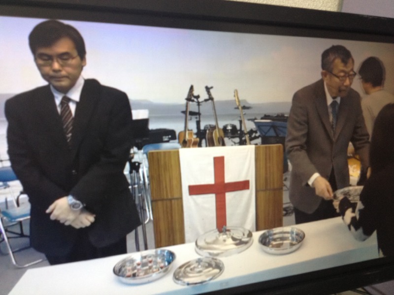 聖餐の恵みに預かります!オンラインの方々も共に…!