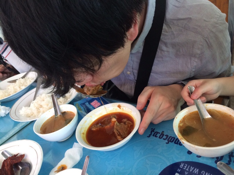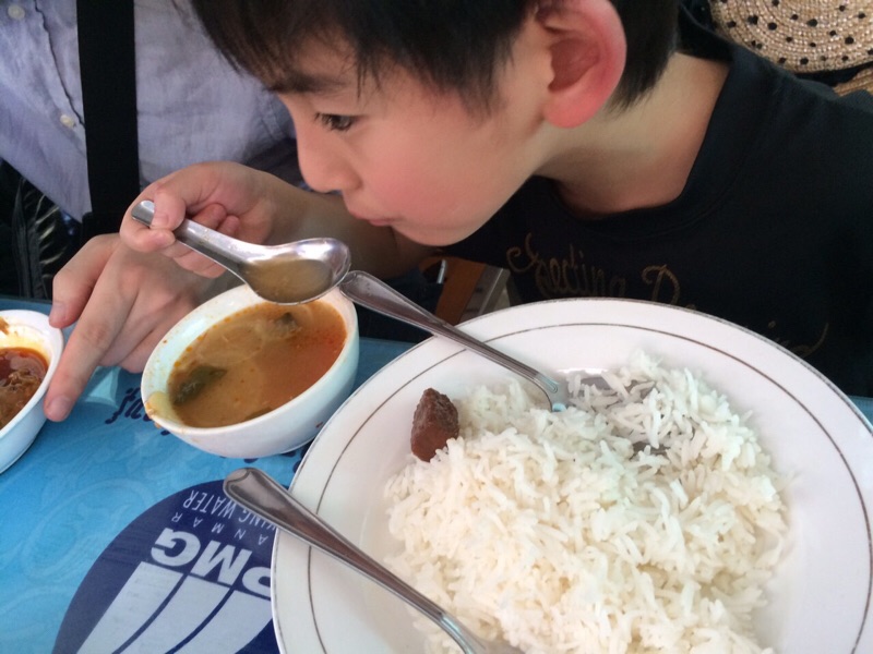 ミャンマーの大衆食堂のようなところにてお昼を頂きました!このチキンカレーのようなスープが特に最高でした! たくや