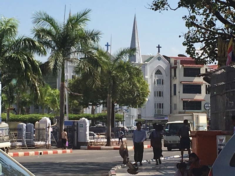 市場を後にしてお昼ご飯へ向かいます。寺院に囲まれて教会が建っています。 たくや