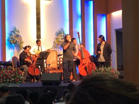 この教会の本来の賛美のスタイルでしょうか。コントラバスが登場しました。 コントラバス、チェロ、ジャンベ、ウクレレ、アコギ、ピアノで賛美されるようです。 たくや
