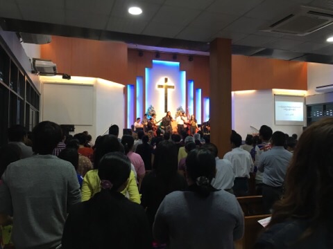 特別賛美がなされています。ボーカルの方が先週マラリアにかかって死にそうなほどでしたが、今日癒されてここで歌える恵みを感謝します。とのことです。 たくや