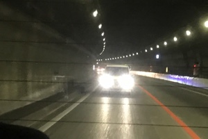 貸し切り状態の高速から、少し混んできました。でも100キロ定速。マス