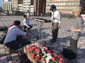 路上ライブの会場は駅前です。jeshu
