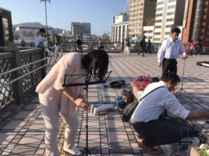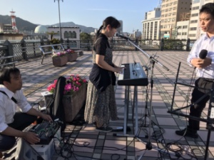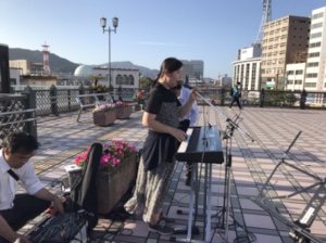 路上ライブ百戦錬磨の素子さん。テキパキしています。jeshu