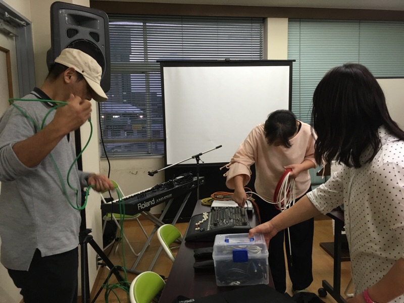 聖会会場をセッティングしています。