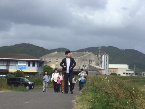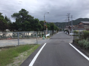 踏切を渡り、野球場を過ぎ、ダスキンが見えると川です。マス