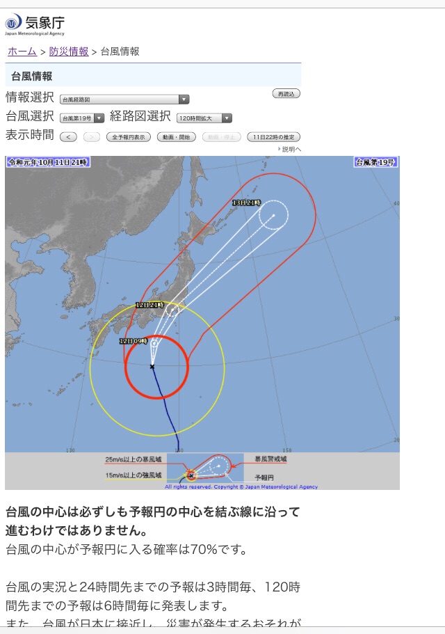 気象庁ホームページより 奇跡的に方向を変えて遠ざかりますように。勢力が弱まりますように。 チェックしつつ祈っています。