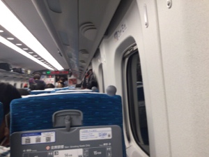 無事に乗れました。今日は指定席通路も満員です。マス